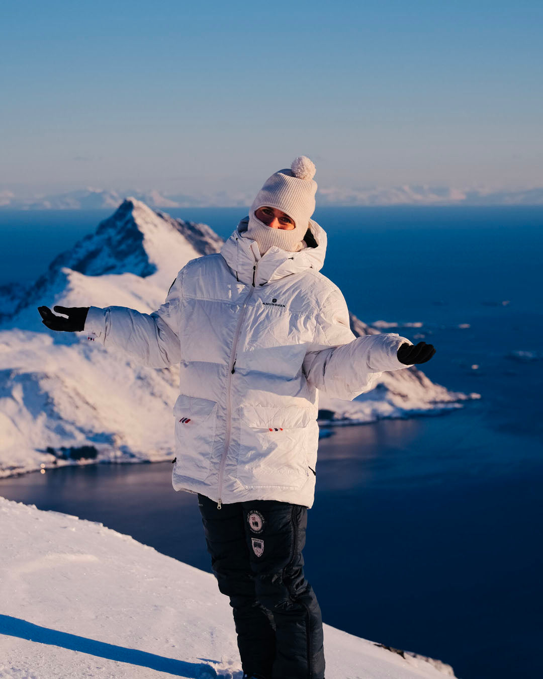The Amundsen Sports Peak Parka is perfect for winter expeditions with its durable Polyamide construction and premium warmth from recycled goose down. The oversized fit allows for layering over shell jackets and mittens, while the Antarctic Expedition patches add a touch of style. Features include a helmet-compatible hood, handwarmer and chest pockets, and cuff adjustments. Made in Europe.